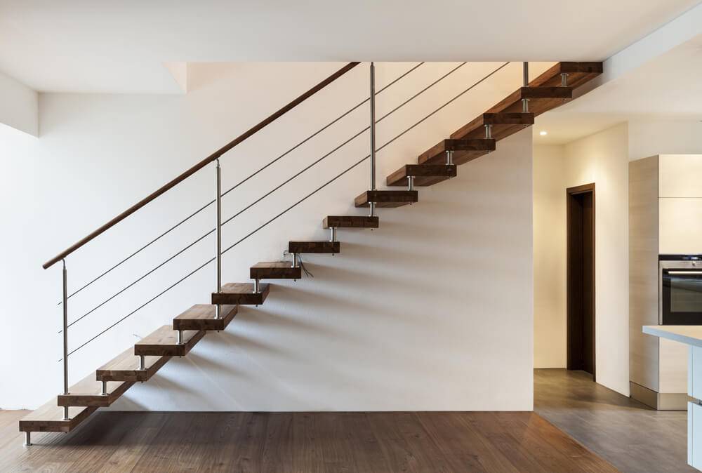 Выделяют прямые конструкции (одномаршевые и двуххмаршевые, с площадкой для отдыха). Они могут быть отдельно стоящими или размещаться около стены. Но прямые модели требуют много площади, поэтому чтобы сэкономить полезное пространство, предусматриваются двухмаршевые варианты с поворотом под углом от 90 до 180 градусов.