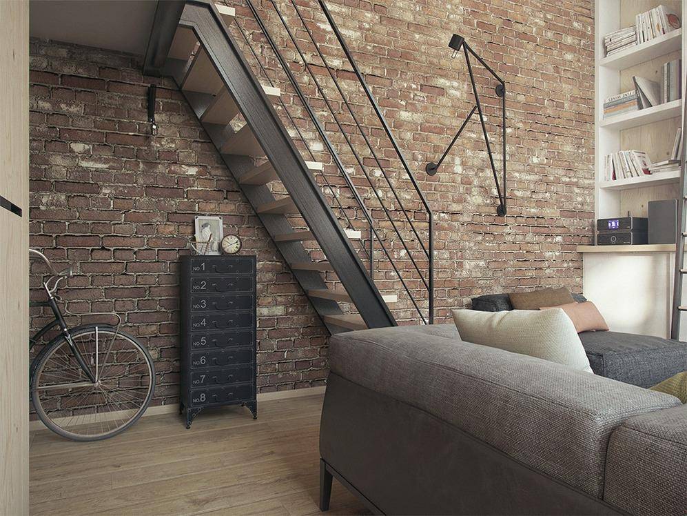 Невероятно модное сейчас направление с элементами промышленного дизайна. Лестница лофт в интерьере преимущественно выполняется из металла (возможно, с небольшими деревянными элементами). Декор и отделка осуществляются с использованием кирпича, труб и других производственных приспособлений. Цветовые решения обращены в сторону холодных металлических оттенков. Грубость и простота форм – непременные атрибуты данного стиля.