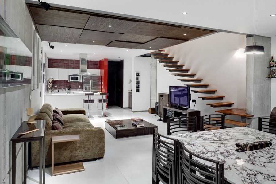Рекомендации по обустройству интерьера гостиной с лестницей на второй этаж