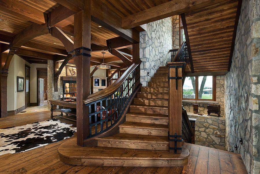 Колоритный американский стиль, широко распространенный во всем мире. Базой его является использование только натуральных природных материалов. Лестничные марши, оформленные в таком стиле, состоят из элементов грубых прямолинейных форм и производят впечатление некоторой громоздкости. Детали очень крупные, не проработанные в мелочах.