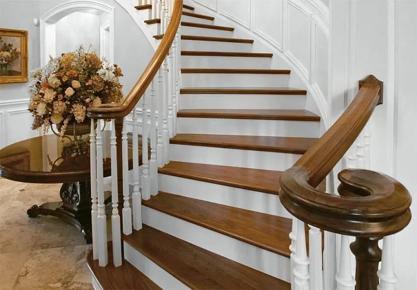 - Материал: натуральный массив дерева, ценных пород. Реже используются металлические конструкции с тонкими коваными перилами.