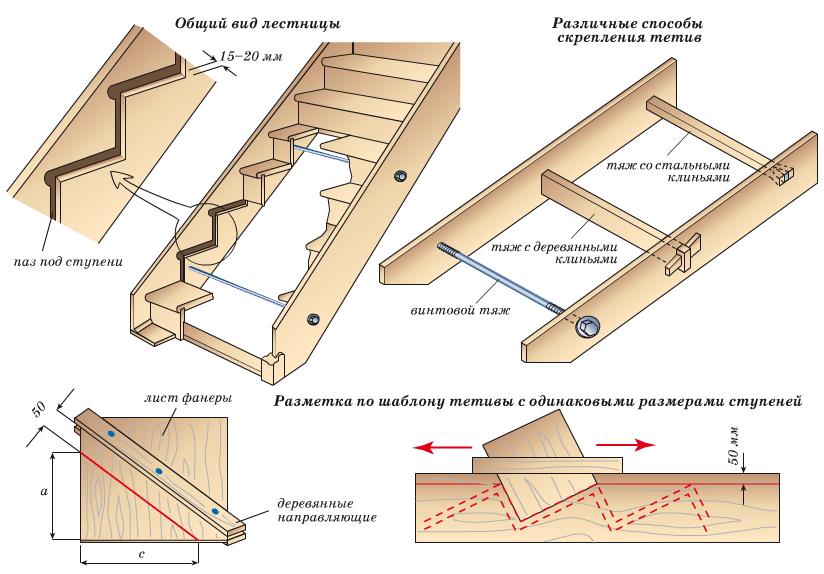 Ступени приставных деревянных лестниц должны быть врезаны в тетивы, которые не меньше чем через каждые 2 м следует скреплять стяжными болтами. На нижних концах приставных лестниц необходимо закреплять упоры в виде острых металлических шипов или резиновых наконечников в зависимости от опорной поверхности, на которую устанавливается лестница. Раздвижные лестницы-стремянки должны иметь устройства, исключающие их самопроизвольное раздвижение.