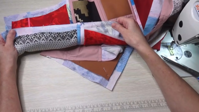 - Сшить лоскуты встык швом «зиг-заг», для прочности каждый шов прошить 3-4 раза.