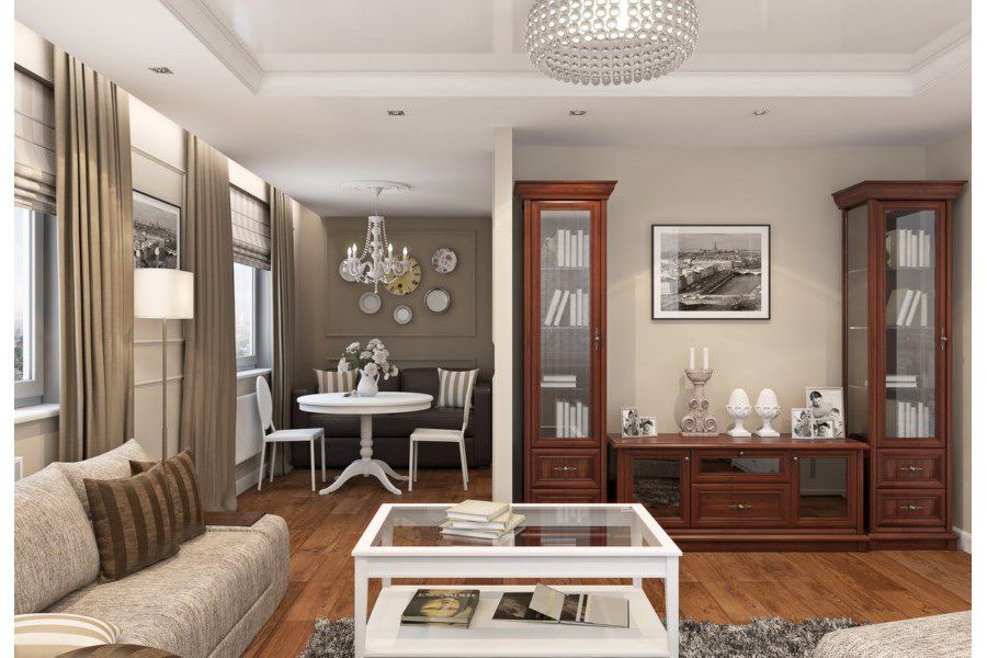 Но в современном мире гостиная может выполнять сразу несколько функций, поэтому для каждой зоны нужен свой гарнитур. Единственное требование — вся мебель должна сочетаться по цвету и стилю.