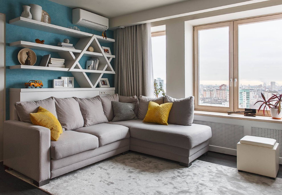 Если помещение небольшое, то разумно купить светлую мебель, — она будет визуально расширять гостиную
