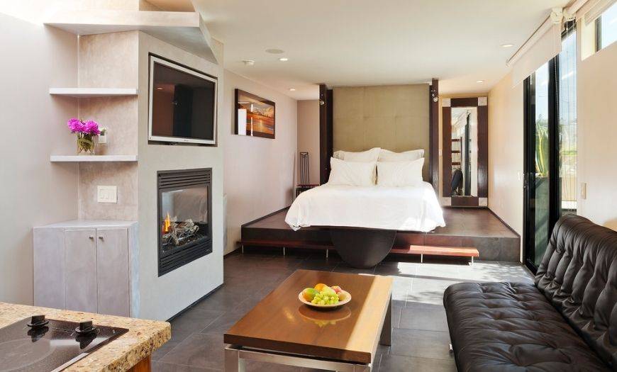 В противном случае он будет центром внимания и визуальный размер комнаты станет меньше. Форма и количество предметов должны быть минимальны и легко передвигаемые. Лучше использовать только те предметы, которые используются очень часто.