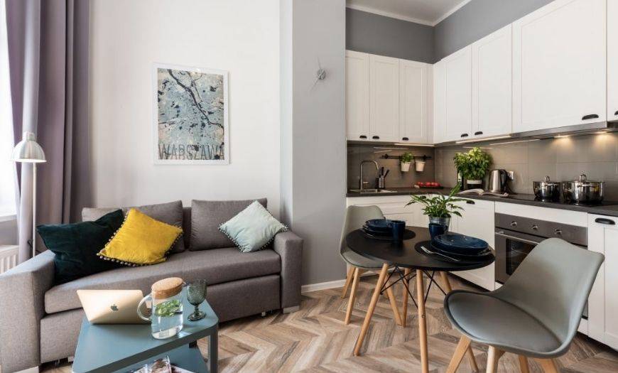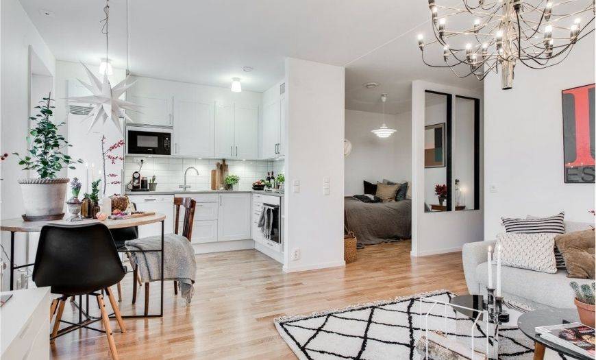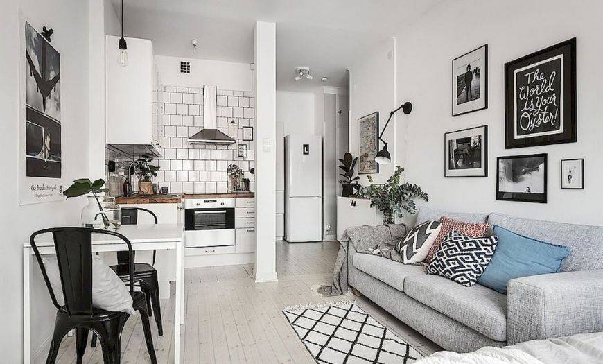 Это невероятно маленькая квартира-студия, которая приносит дань скандинавскому дизайну. Вся площадь занимает 42 кв. м. Просторная и светлая гостиная оснащена окнами, выходящими на тихий район. Гостиная и кухня объединены, что создает визуальное увеличение пространства.