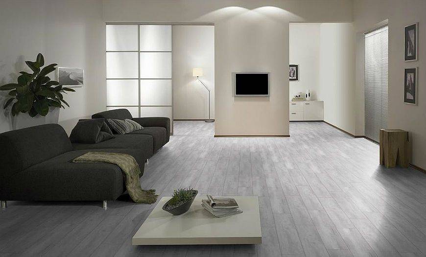 Хорошим решением будет и паркет: им чаще всего оформляют зоны гостиной и спальни, где важно ощущение тепла и уюта. Для ванной используют кафельную или керамическую плитку