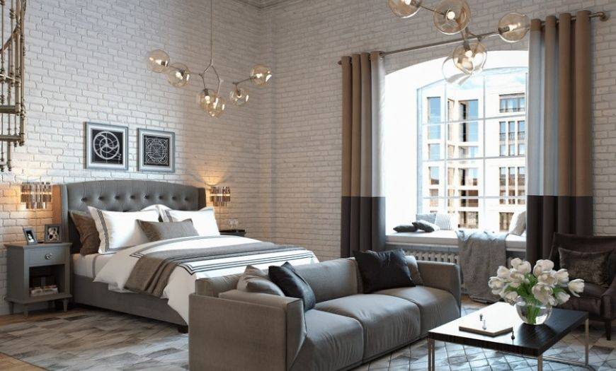 - Лофт – модное направление, которое лучше всего подходит для квартир-студий, т. к. в своей основе несет концепцию открытого пространства. Его характерными особенностями можно назвать нарочито грубые, как будто не отделанные поверхности – бетон, кирпичная кладка либо ее имитация, штукатурка. Все это придает особое очарование помещению, в котором можно ставить как классическую, так и современную мебель. Зонировать пространство проще всего за счет освещения, отделки пола и других подобных приемов.