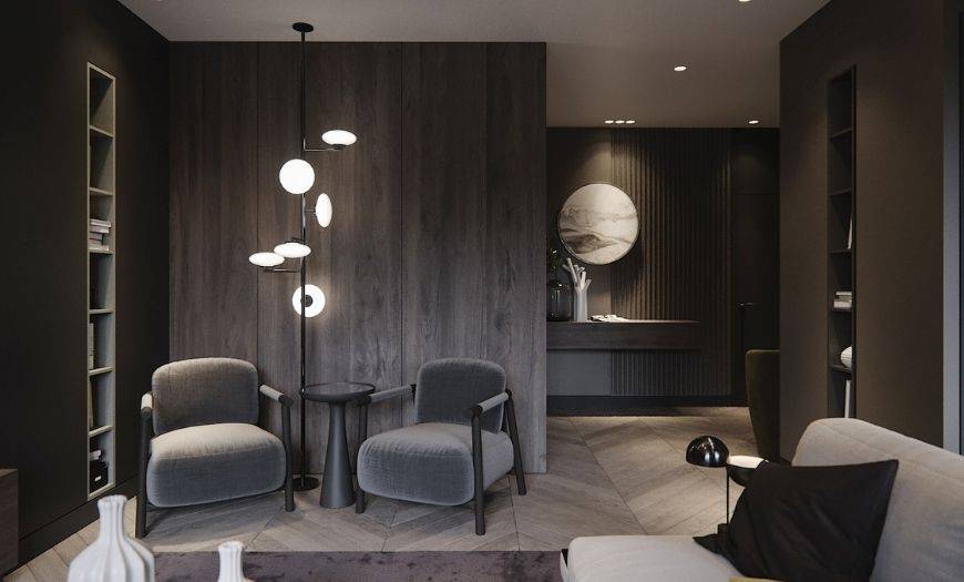 В приоритете мягкий многоуровневый свет во всех помещениях и приглушенная цветовая палитра, которая не режет глаз.