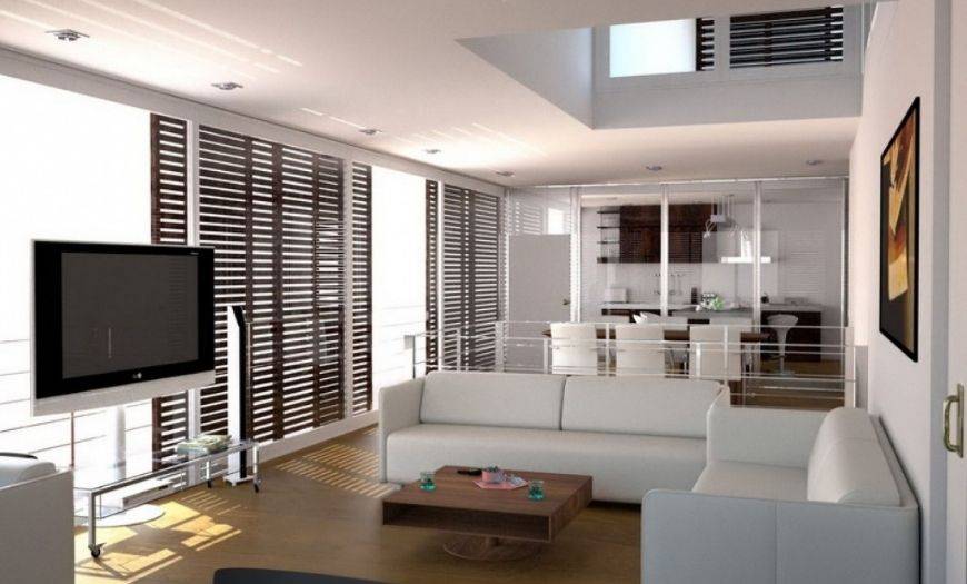- Минимализм. Идеальное решение для ограниченного пространства, предполагающее использование только нужной мебели. Количество декора минимально, предпочтение отдается функциональности и выбору универсальных решений. Столы, трансформируемые из журнального в обеденный, откидные столешницы и другие подобные системы идеально впишутся в такую обстановку. Обычно используют светлые тона, все достаточно строго – без лишних деталей. Те, кто любит порядок, по достоинству оценят такой современный дизайн.