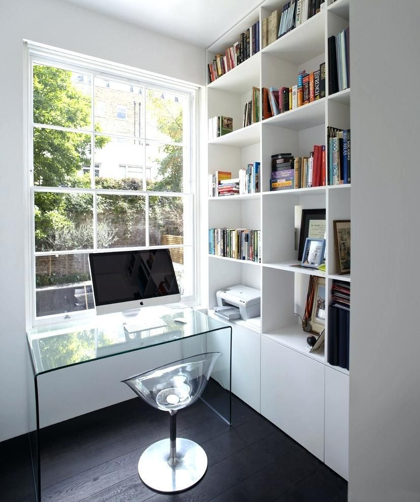 Весьма оригинальным решением будет поставить компьютерный стол на отапливаемый балкон. Компактное бюро, небольшая консоль, либо узкий длинный стол-подоконник станут хорошим выбором для этой комнаты.