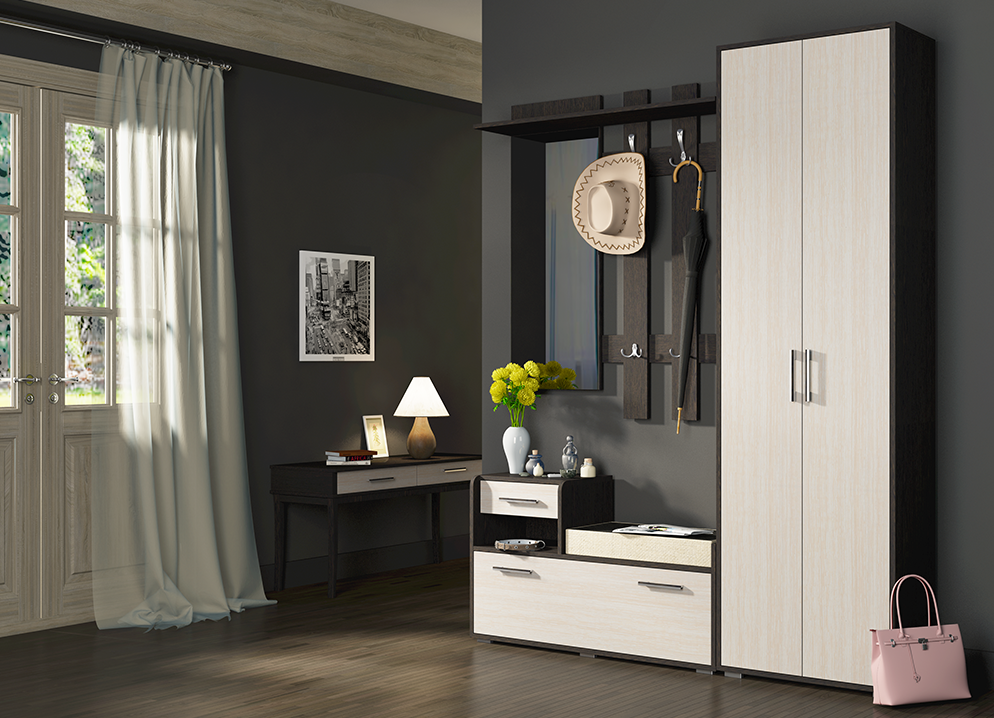 - должно соблюдаться единство мебельного гарнитура. Отсек для головных уборов, верхней одежды, зонтов и ключницы должны представлять собой комплексный элемент;