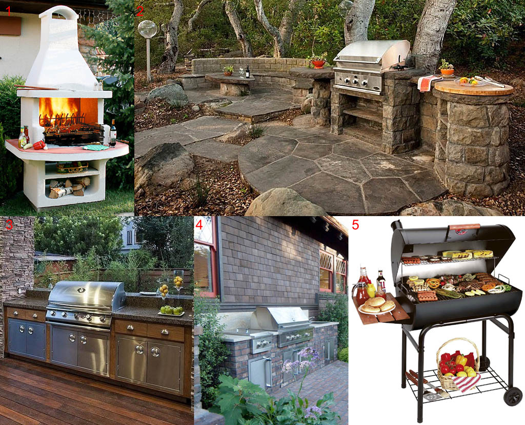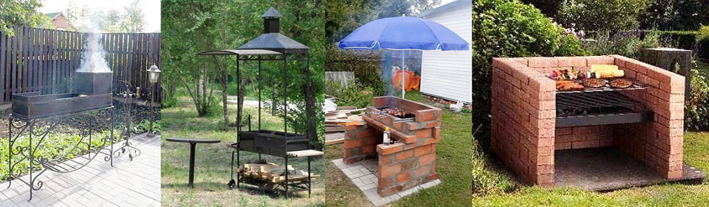 Печи барбекю строятся различного конструктивного и ценового уровня, но обратите внимание на ту, что справа внизу – она предельно проста, а жарит-печет не хуже. Что дымит, не беда, с этим можно справиться, см
