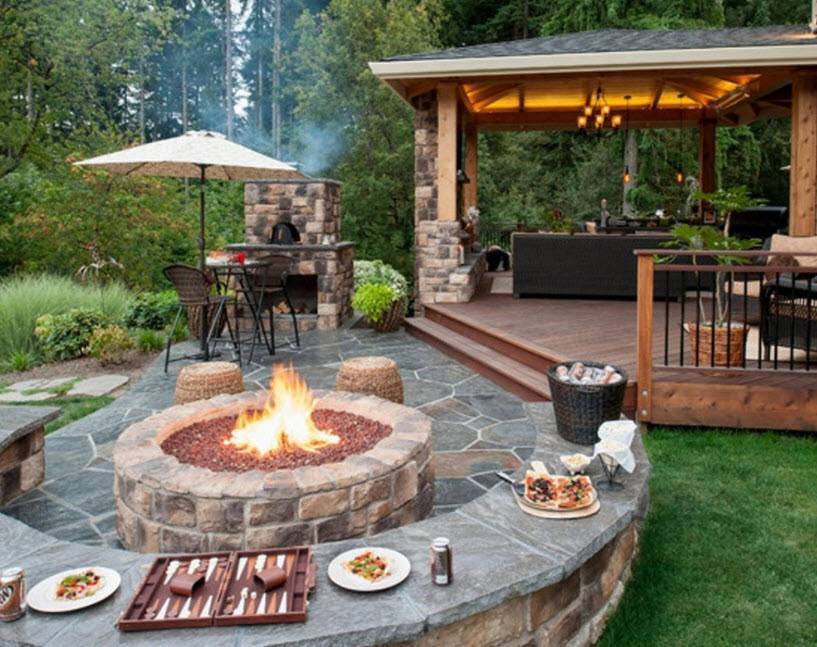 Если вы любите готовить и любите экспериментировать, сочетайте в пределах одного барбекю разные типы очагов. Помимо практической выгоды, есть шанс создать авторский акцент сада, поскольку все идеи «огня» хорошо сочетаются друг с другом, и совместно усиливают друг друга. Например, можно соединить открытый очаг и тандыр, поставив их вместе на площадке, а площадку зонировать: каждая зона будет относиться к конкретному очагу.