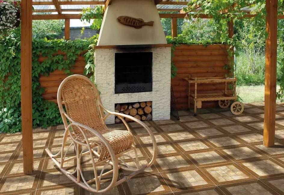 Если у вас уже есть площадка отдыха, а вы готовите на огне редко и используете при этом переносной мангал, вам достаточно выложить для него дополнительную маленькую площадку из керамической плитки, можно и облицовочной.