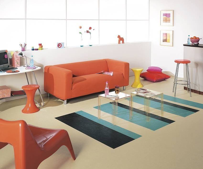 Мармолеум можно применять для любых помещений в доме – в кухне, в жилых комнатах, в коридоре.