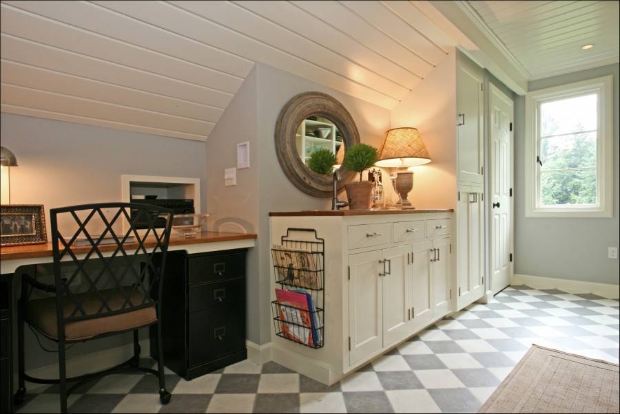 Если на полу предполагается рисунок из плиток разного цвета, его предварительно следует изобразить на бумаге и на полу, а работу лучше начинать с центра помещения.