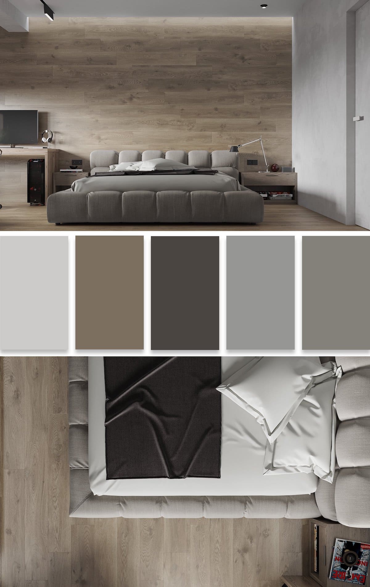 Переходим к оформлению спальной комнаты. Поскольку это помещение является личной территорией, то здесь можно делать все что вздумается, учитывая только свои вкусы и предпочтения. Цветовая гамма 2022 может варьироваться от черного до красного оттенка. Главное — личный комфорт. Но поскольку спальня является местом отдыха, то определенные рекомендации по выбору цветов существуют.