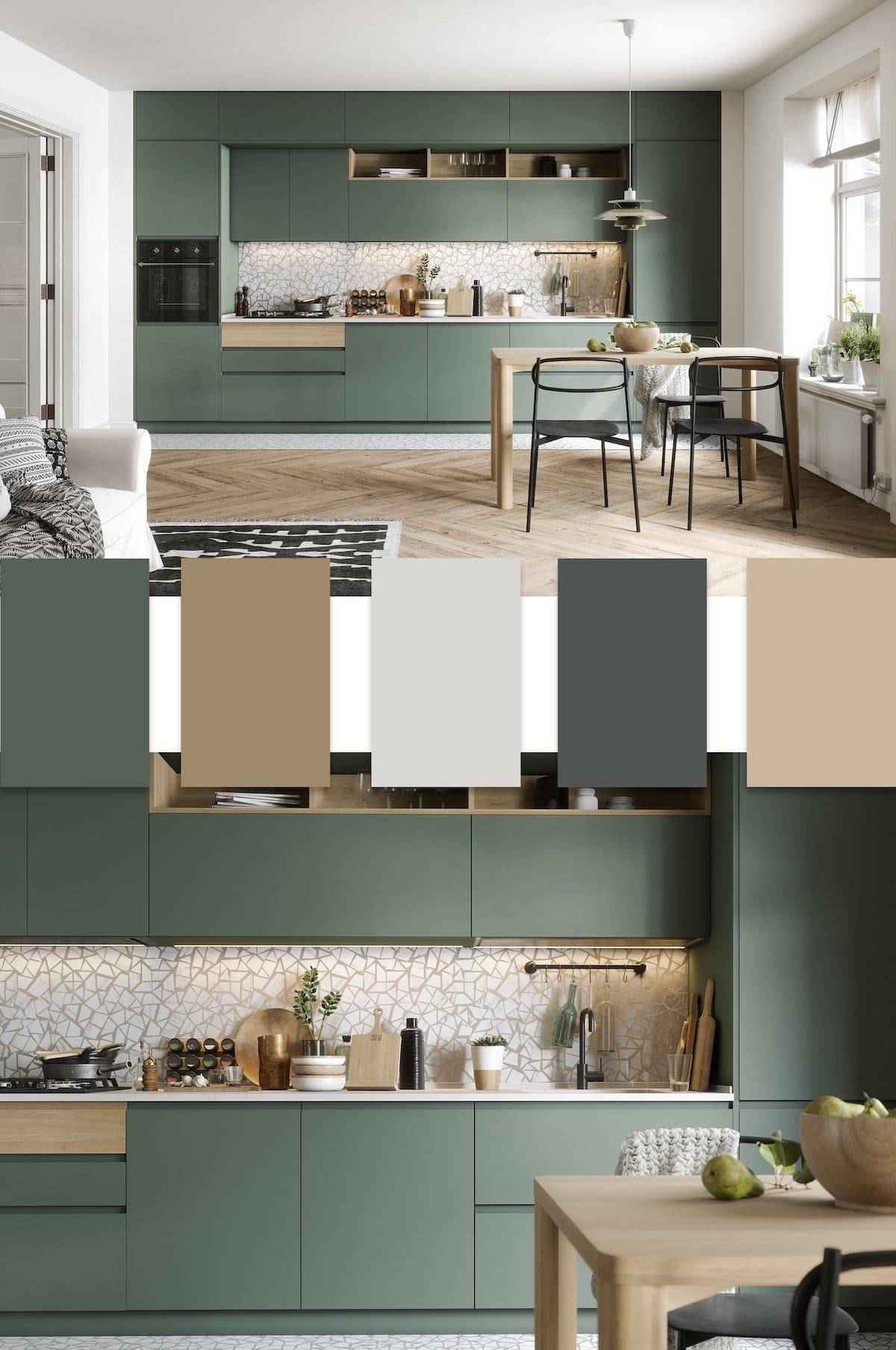 Определиться с модным сочетанием цветов 2022 в интерьере кухни гораздо проще. Поскольку это помещение предназначено для приготовления и потребления пищи, то цветовая гамма должна поднимать настроение и улучшать аппетит.