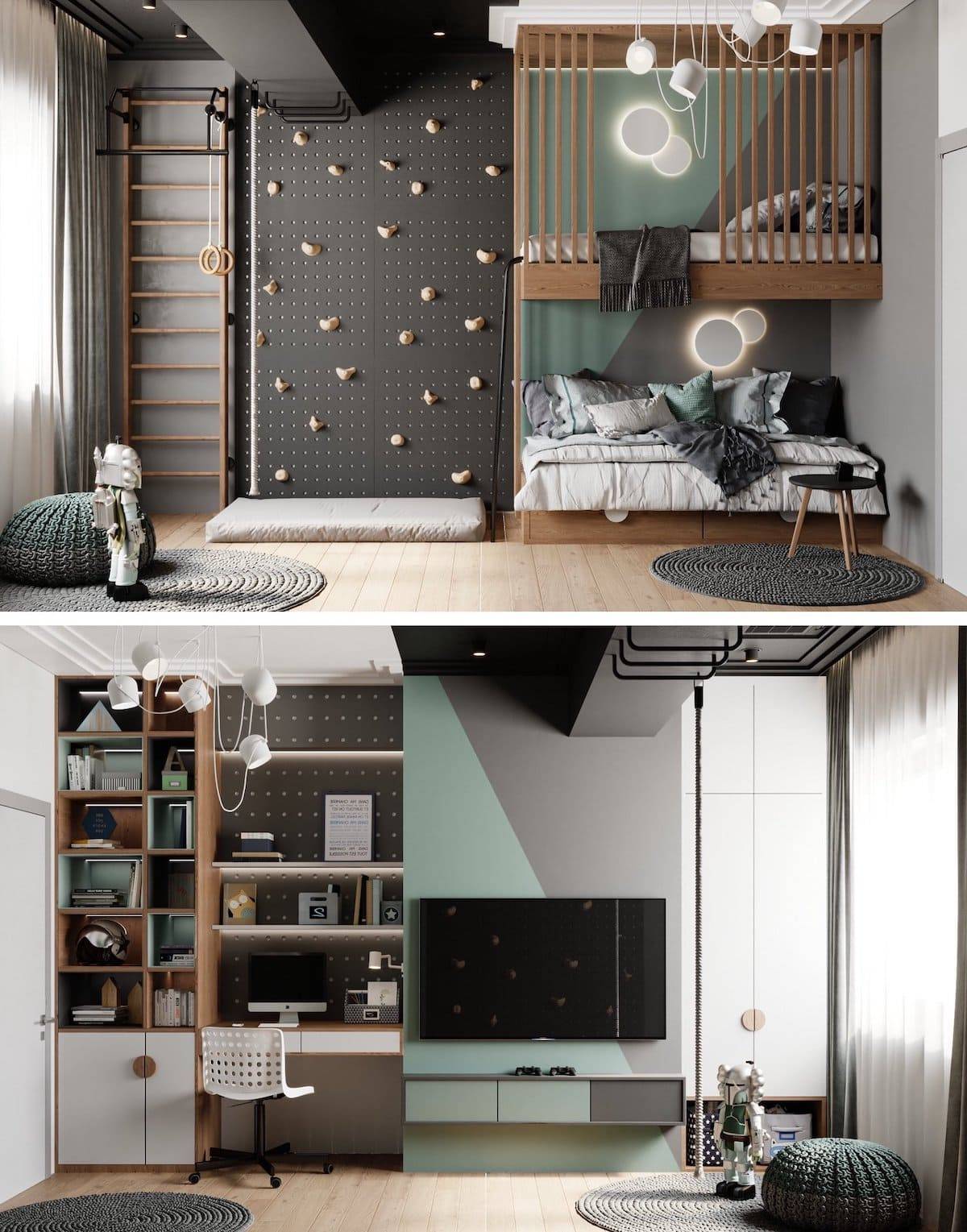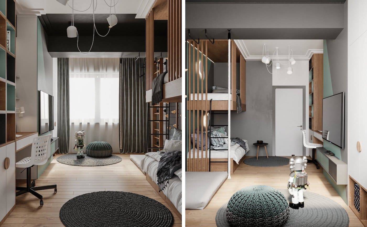 Нежный мятный цвет хорошо гармонирует с разными оттенками благородного серого. Такие сочетания помогут подчеркнуть хороший вкус хозяев.
