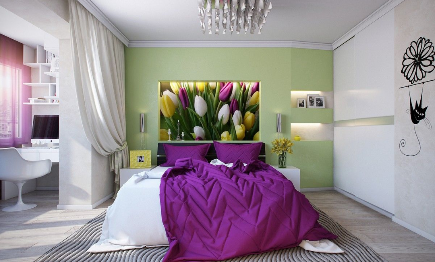 Сочетание мятного и лавандового часто используется при оформлении спален и детских комнат.