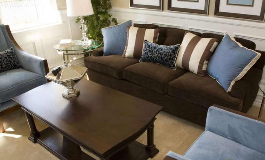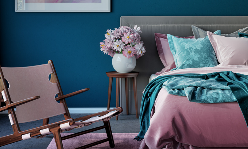 - С помощью данного цвета можно придать глубину комнате. Для этого стараются дополнительно использовать орнаменты в текстиле и других предметах. Приветствуется применение декора на тон темнее.