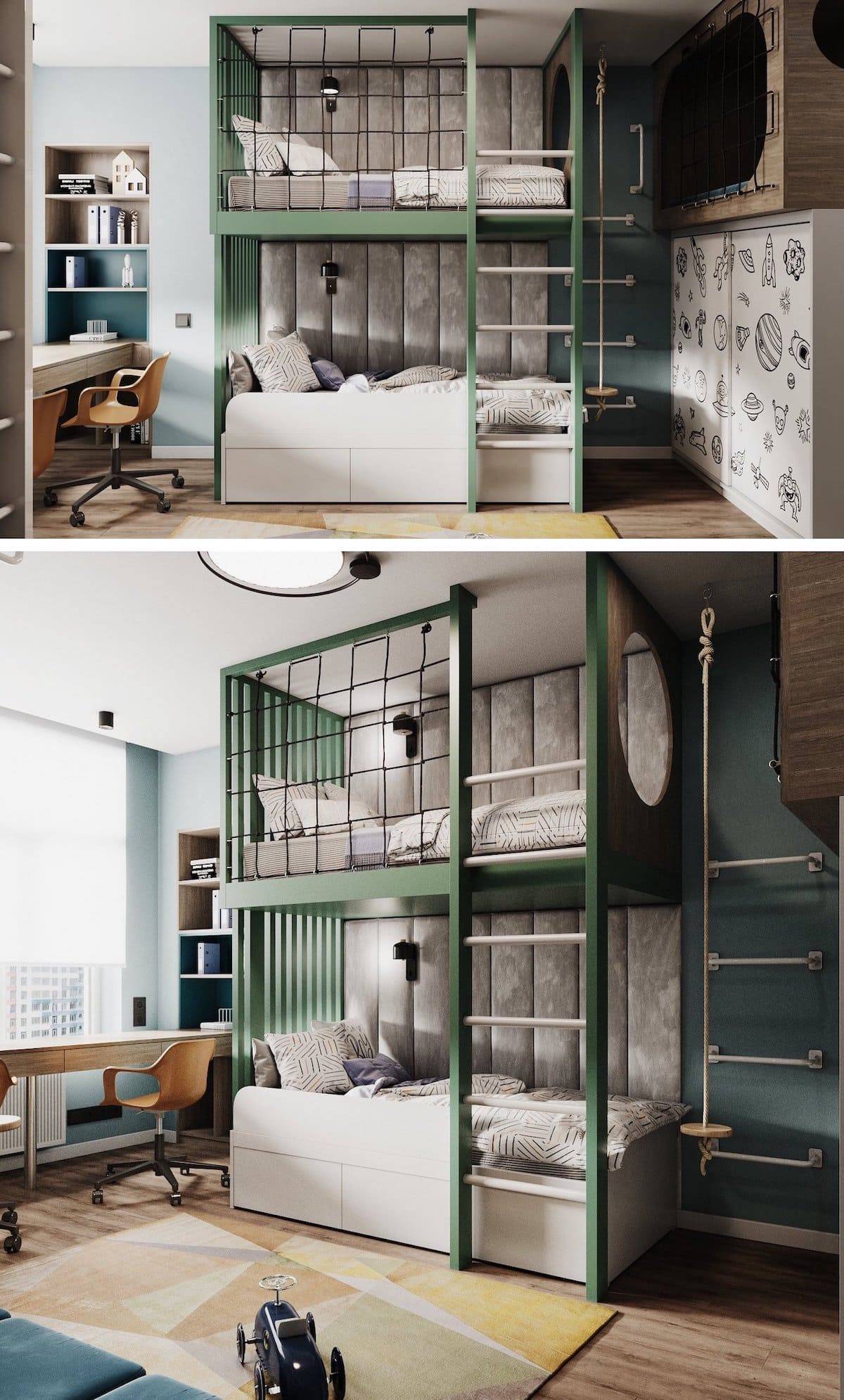 Желтый цвет воздействует на концентрацию внимания, повышает творческие способности ребенка. Красные оттенки в интерьере будут пробуждать энергичность и подвижность малыша, но переизбыток эмоций помешает ему спокойно уснуть.