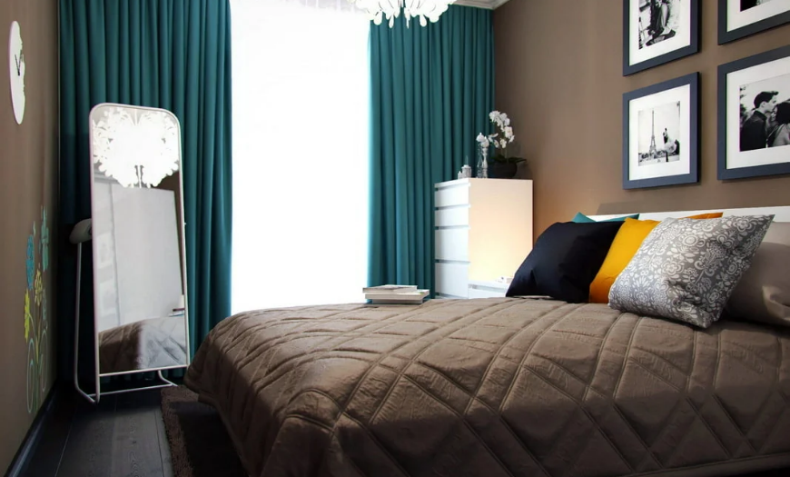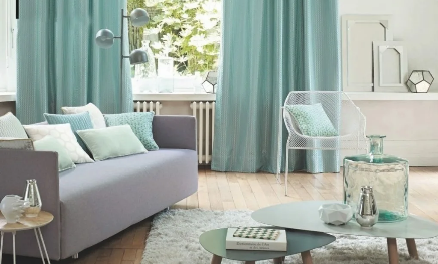 Если гостиная небольшая, то для такого помещения рекомендуют подбирать текстиль и шторы мятных оттенков.