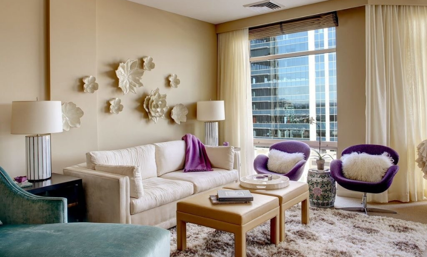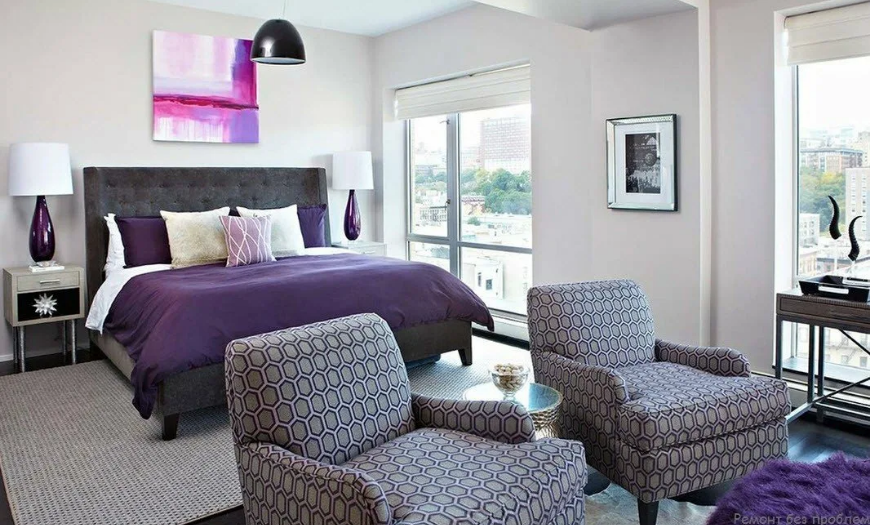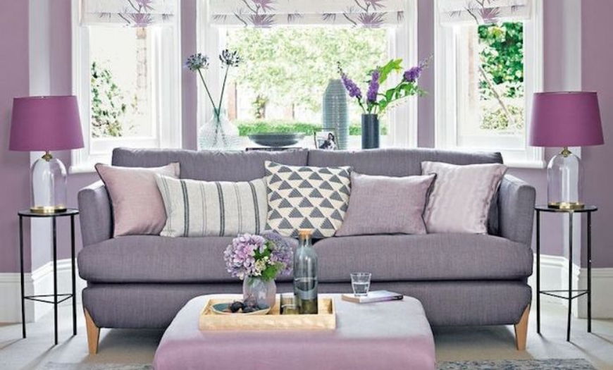 Можно в одной комнате сочетать сразу несколько родственных оттенков это тона, но главное не перебарщивать. Оптимально, если базой является белый, серый или бежевый, а фиолетовый используется как яркое дополнение.