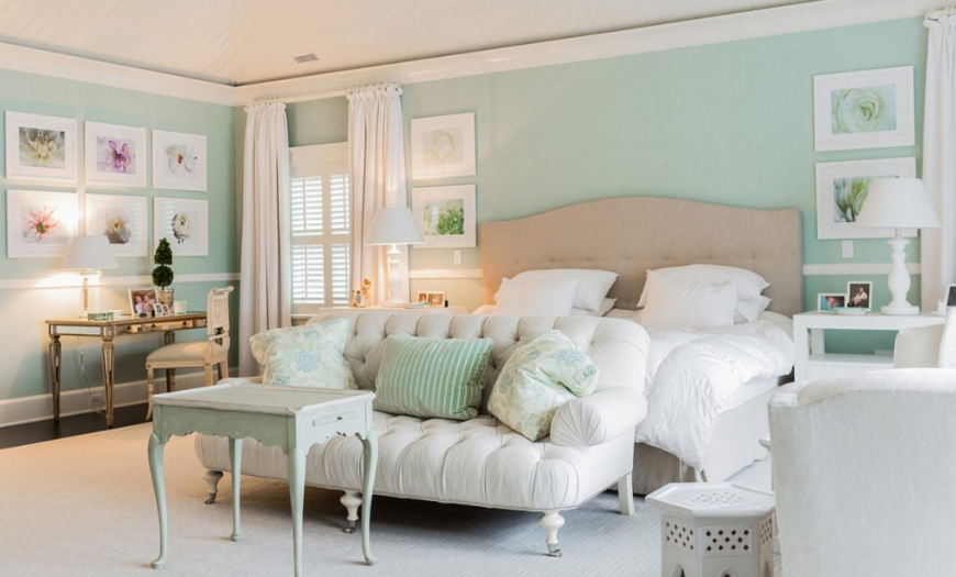 В помещениях для сна цвет мяты помогает создать атмосферу уюта, располагающую к хорошему отдыху и расслаблению.