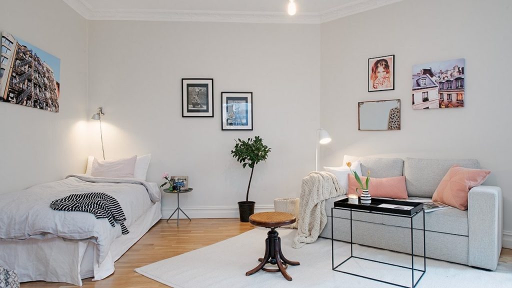 Иногда приходится использовать одну комнату для разных целей. В этом случае можно создать отдельные функциональные зоны с полками, шкафчиками, которые будут выполнять роль ширм. Складывание или трансформация мебели поможет сэкономить место.