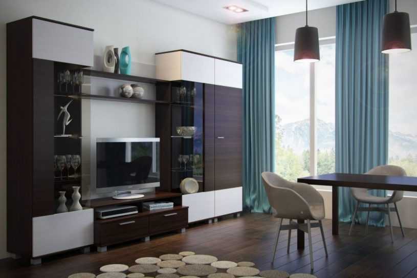 В настоящее время модульные стенки являются наиболее востребованными среди остальных, поскольку они универсальны и мобильны. Благодаря модульным системам существует возможность самостоятельного подбора нужных модулей и компоновки из них гарнитура под определенную гостиную. Преимущества таких ансамблей следующие:
