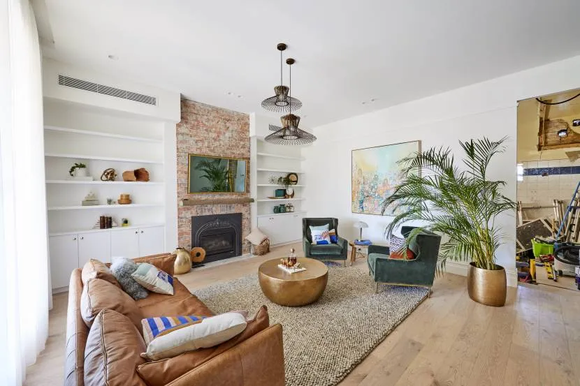 Любителям более спокойных дизайнов гостиных понравятся интерьеры, наполненные натуральным деревом и растениями. В такой гостиной стены выкрашены в белый цвет, а горшки с монстерой, папоротниками и драценами расставлены сверху — на ящиках, полках, клумбах или даже прямо на полу, если растение подходящего размера и никакая мебель его не заслоняет.