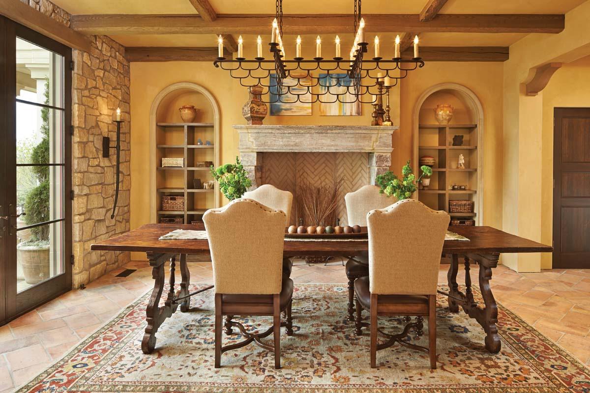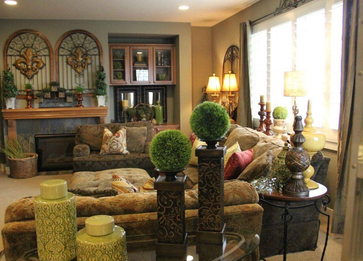 Гостиные в средиземноморском итальянском стиле очень интересны с архитектурной точки зрения: для них характерны высокие потолки и изящные арочные проемы. Стены украшены фресками, резными картинными рамами. Кованые светильники излучают мягкий приглушенный свет. Раскрывается весь потенциал желто-охровой цветовой гаммы, в которой выдержано помещение. Живые цветы, статуэтки, сосуды и плетеные украшения дополняют интерьер.