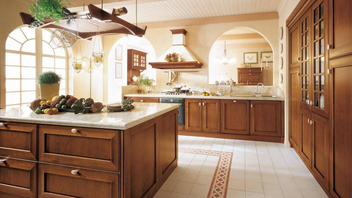 Это именно то помещение, где декор смотрится особенно хорошо. На пол кладется плитка или натуральный камень. Стены покрывают частично мозаичной плиткой (обычно в зоне кухонного фартука), частично штукатуркой. Потолок белят, опционально оставляют на нем балки. Кухня в итальянском стиле обычно светлая: освещение должно быть обильным, а стулья вокруг стола должны соответствовать разновидности стиля, шторы – быть легкими и хорошо пропускать свет.