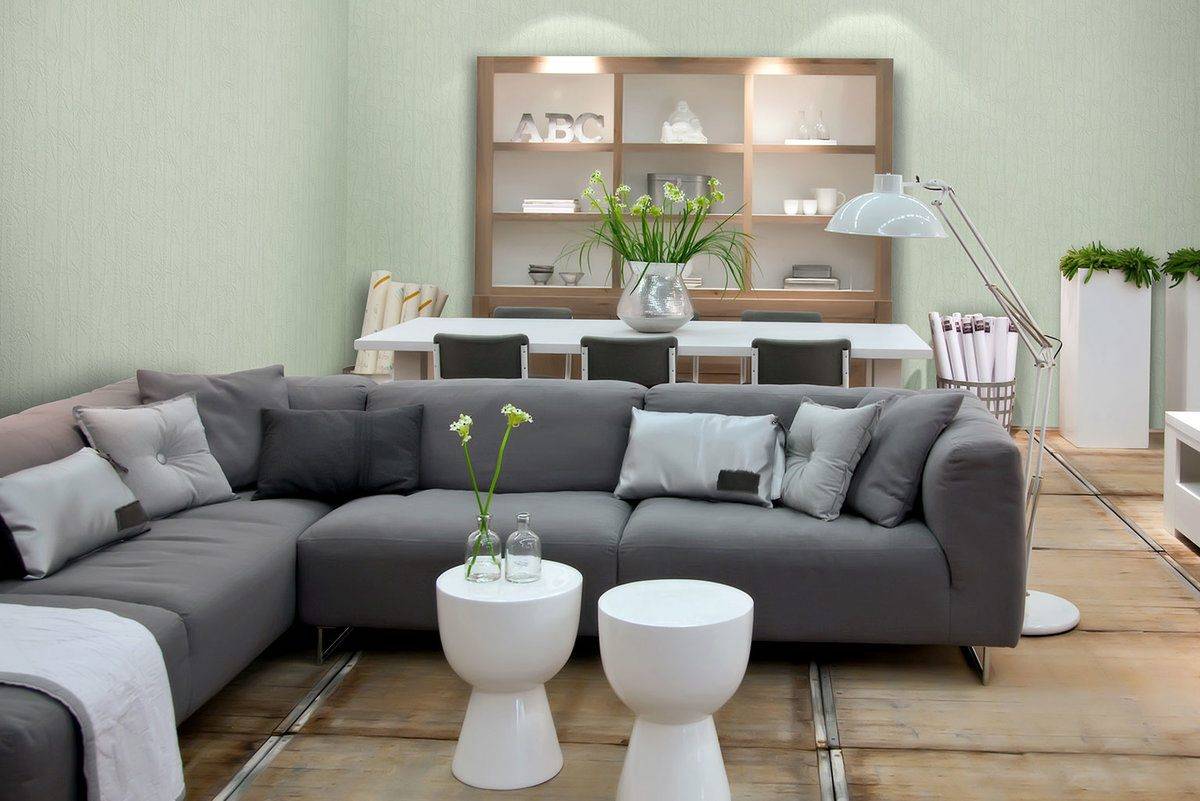 - Песочно-серая гамма может быть дополнена зеленым.