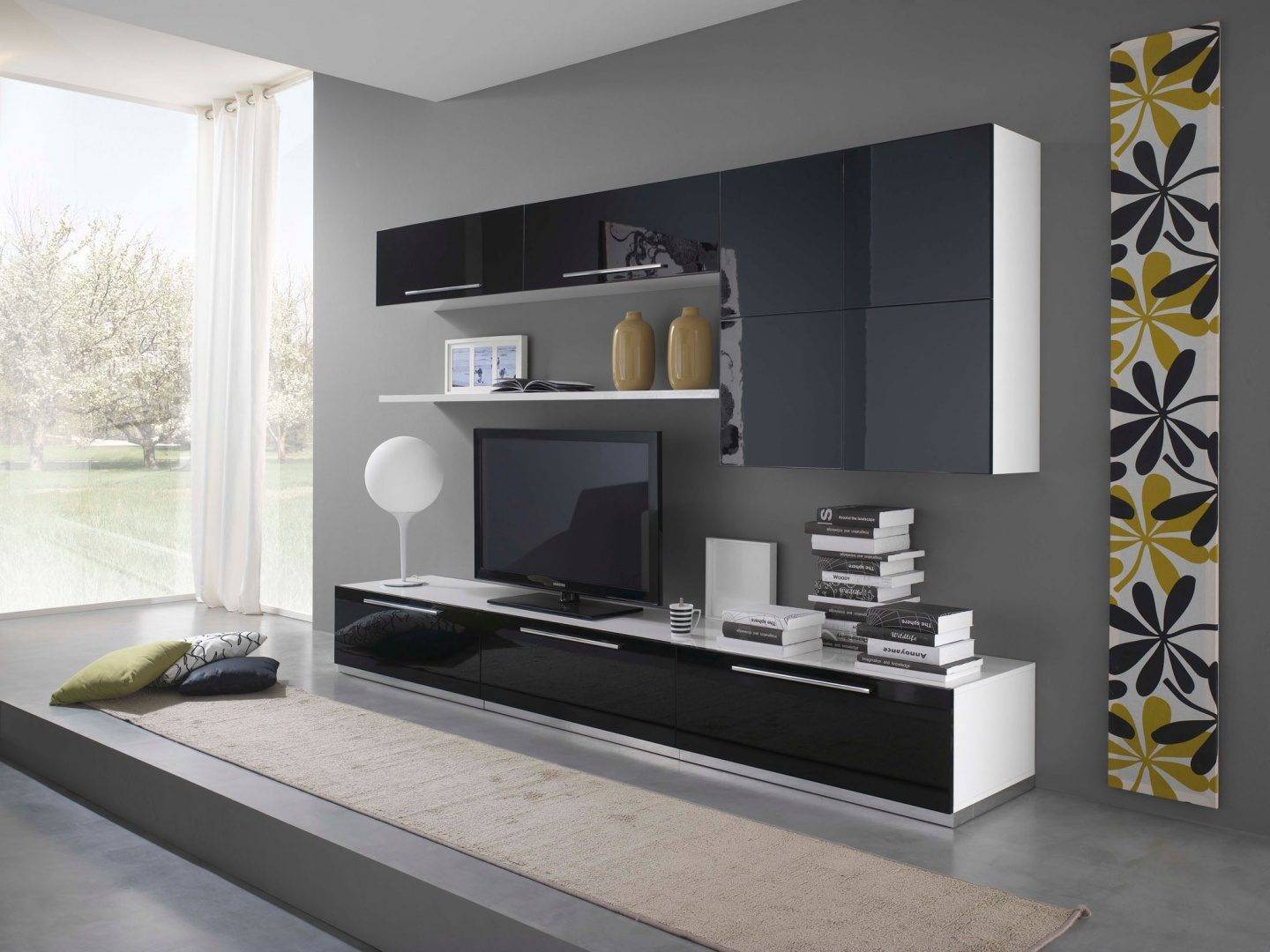 Черная и белая мебель для гостиной в современном стиле