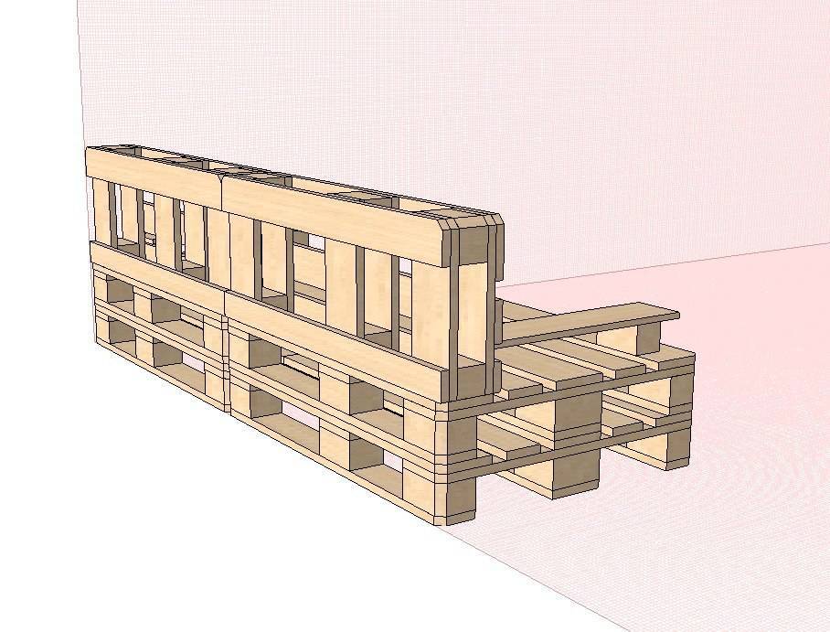 Для вас мы наглядно показали, как сделать металлический крепеж между блоками поддонов. Мы рекомендуем не только приклеивать или прибивать его, но и укреплять металлическими пластинами. Они продаются в строительных магазинах.