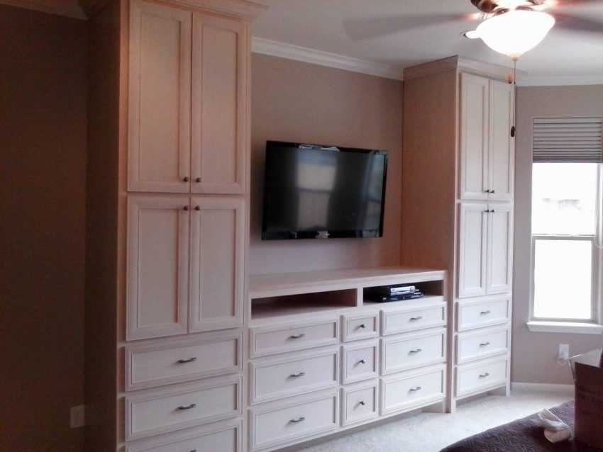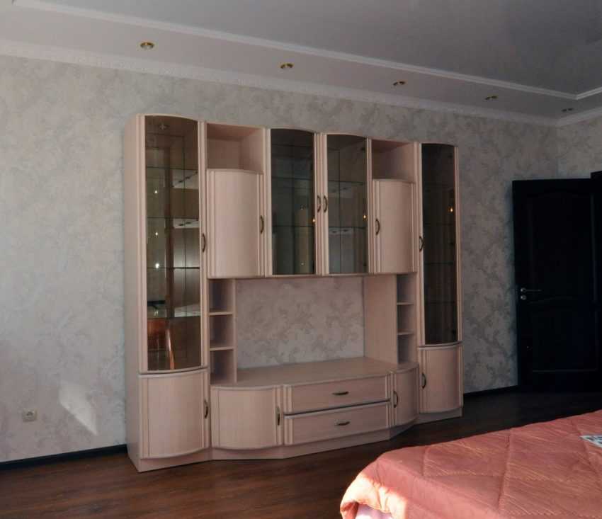 Готовая стенка в спальню под телевизор со шкафом или любой другой вариант меблировки помещения для комфортного отдыха представляет собой уже полностью подготовленный комплект.