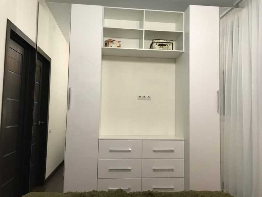 Стенка в спальню с угловым шкафом может располагаться буквой Г (наиболее часто используемый вариант) или занимать сразу два угла, выстроившись буквой П. Это самая вместительная модификация, но и места она потребует довольно много.