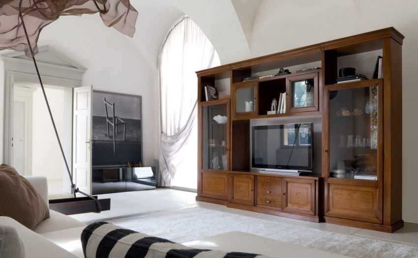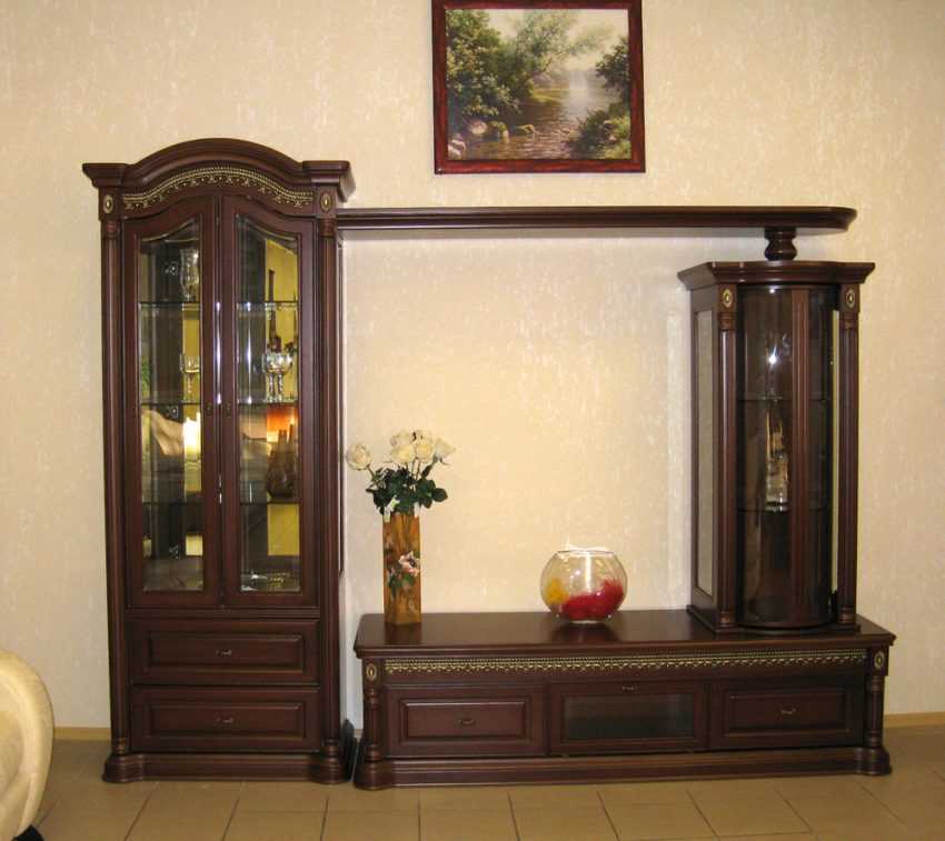 Мебель для зала в классическом стиле, обладает особой визуальной легкостью, утонченностью и неповторимой элегантностью. Фасады часто декорируют резьбой, инкрустацией или росписью.