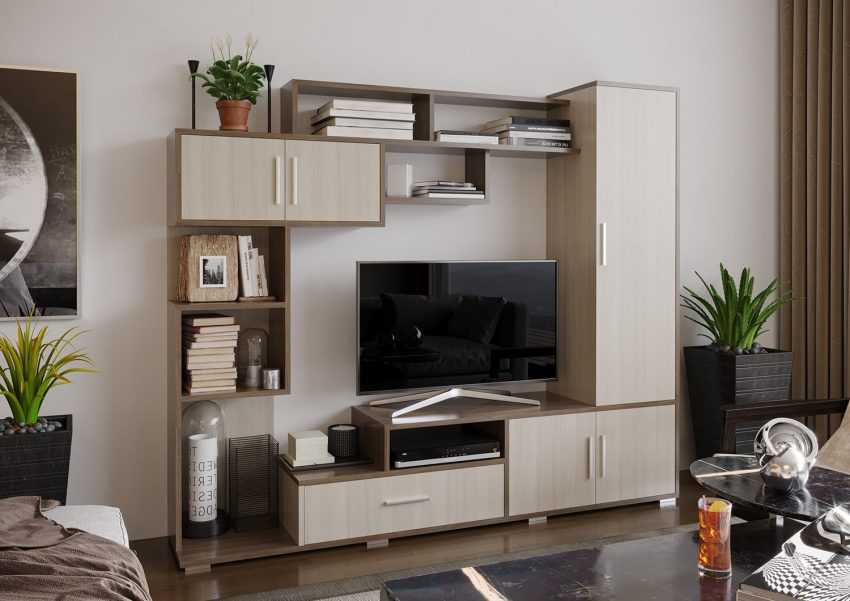 Большинство стенок для гостиной имеют стандартный набор модулей: