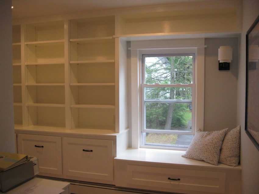 В небольшое помещение также удачно впишется низкая, узкая конструкция или мини-стенка, включающая в себя длинные полки, маленькие тумбы или шкафы, прекрасно подходящие для размещения книг, картин, сувениров, фотографий и прочих безделушек.