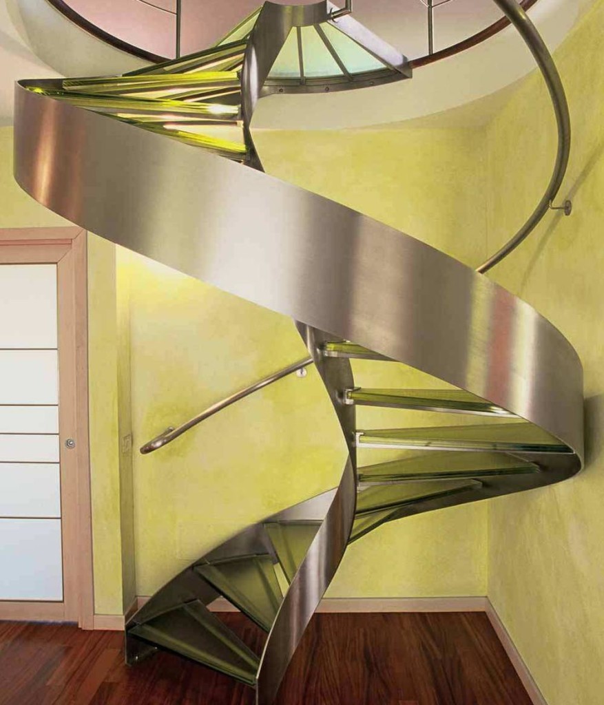 Из этого материала изготавливают лестницы любой сложности и размеров для дачных помещений. От небольших маловесных конструкций, до капитальных изделий любой сложности. Такое строение будет прекрасно смотреться снаружи и внутри дома. Удобство и красота металлических лестниц отлично вписывается в любой дизайн домашнего интерьера.