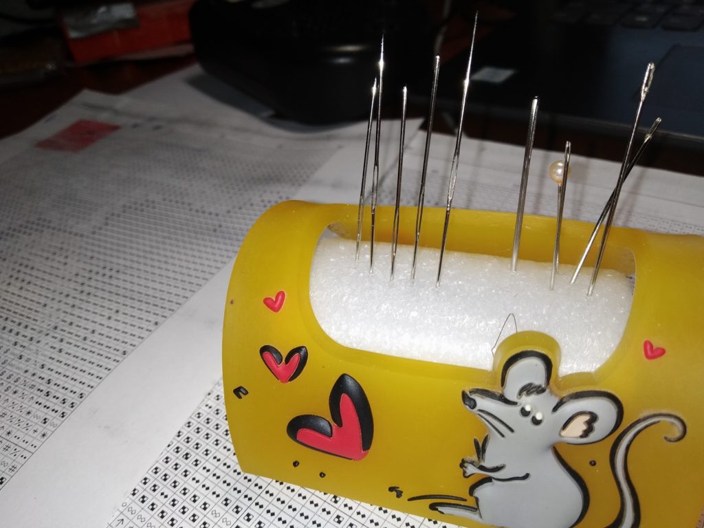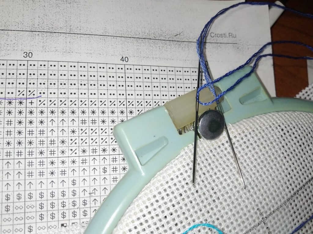 - Для парковки иглы используйте магниты, поролоновый валик или подушечку. Если инструмент постоянно прикалывать к канве, ткань начнет растягиваться, провисать. Зачем портить картину на корню?