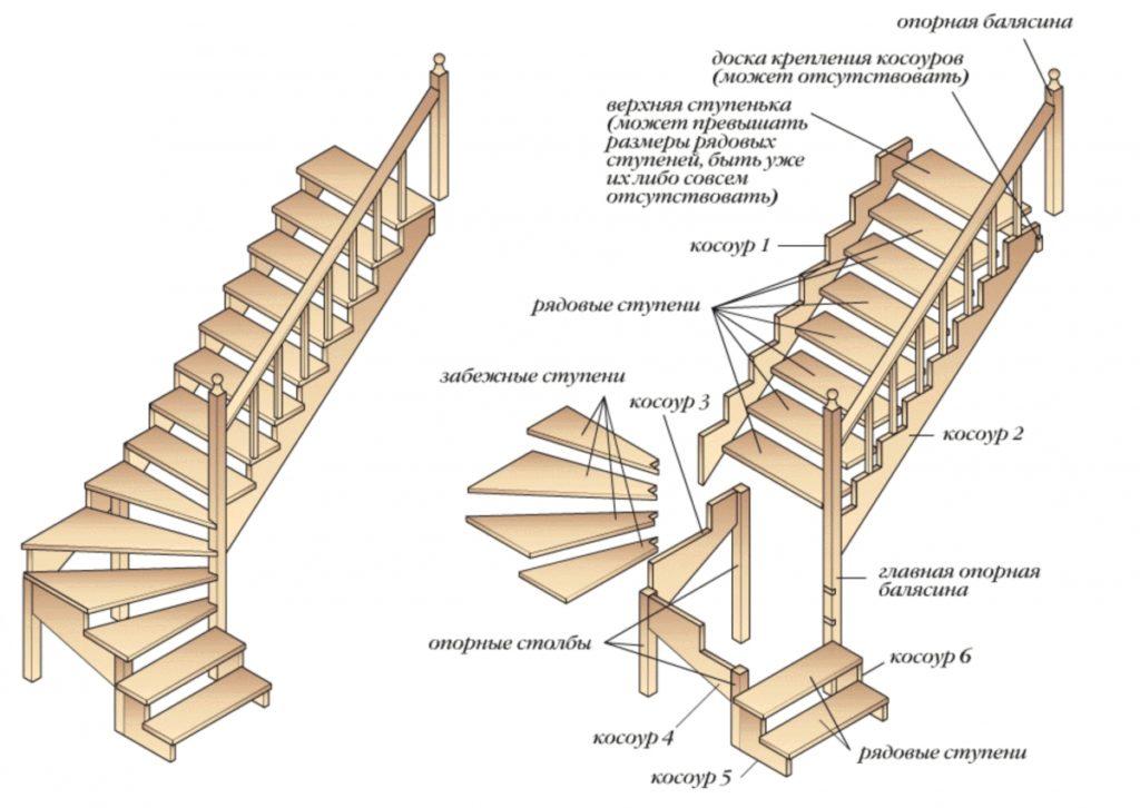 Лестница с поворотом на 90 градусов с забежными ступенями