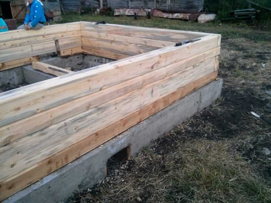 Для возведения стен используется обрезная доска из лиственных пород деревьев толщиной до 6 см. Мобильная экономбаня не требует обустройства фундамента, но для повышения устойчивости конструкции рекомендуется использовать дополнительную деревянную основу из досок толщиной до 5 см.
