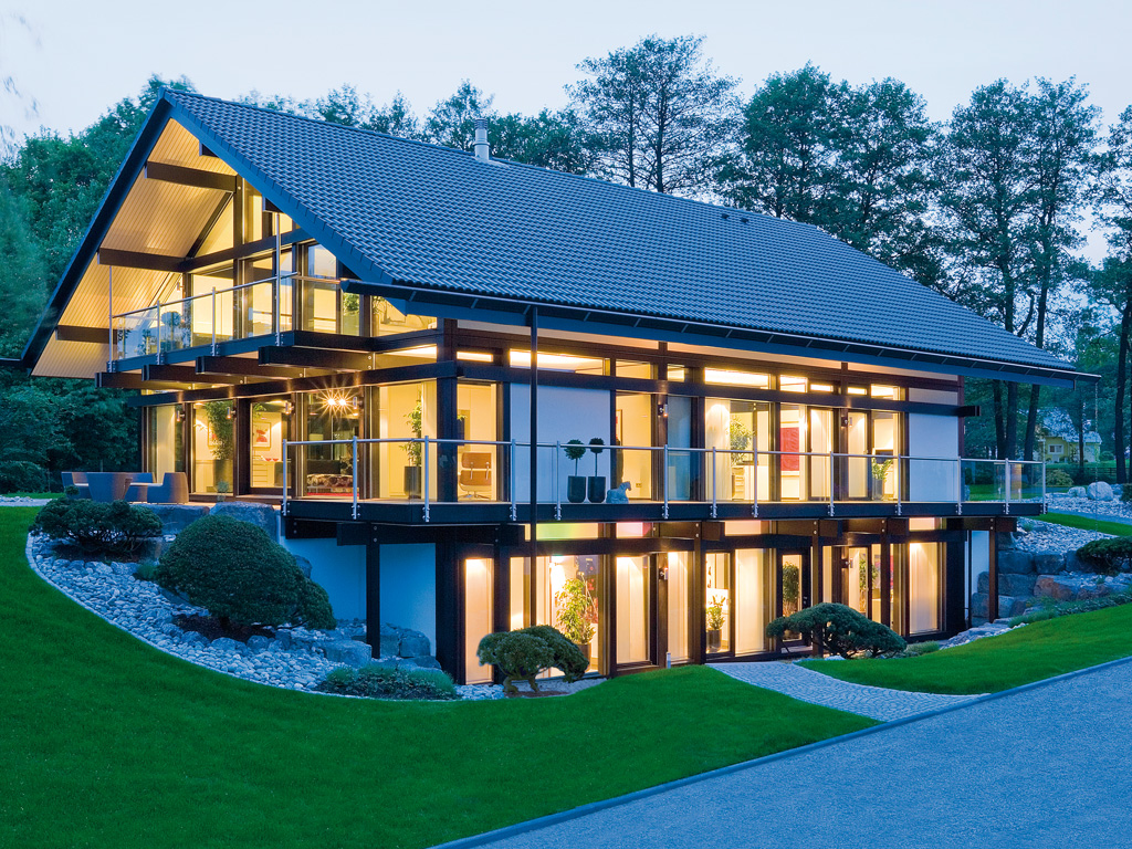 - Практически в каждом немецком доме выше одного этажа присутствует балкон правильной геометрической формы. При традиционной постройке он будет открытым, но в последнее время заказчики все чаще предпочитают панорамные закрытые балконы.