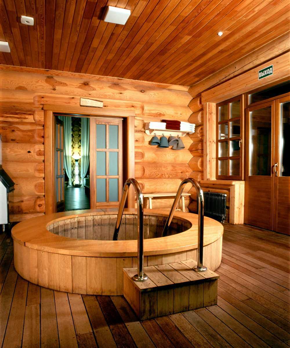 Важно выбрать нескользкий материал или разместить сверху поддоны из дерева. Для создания купели легче всего приобрести готовую модель и установить ее в моечной
